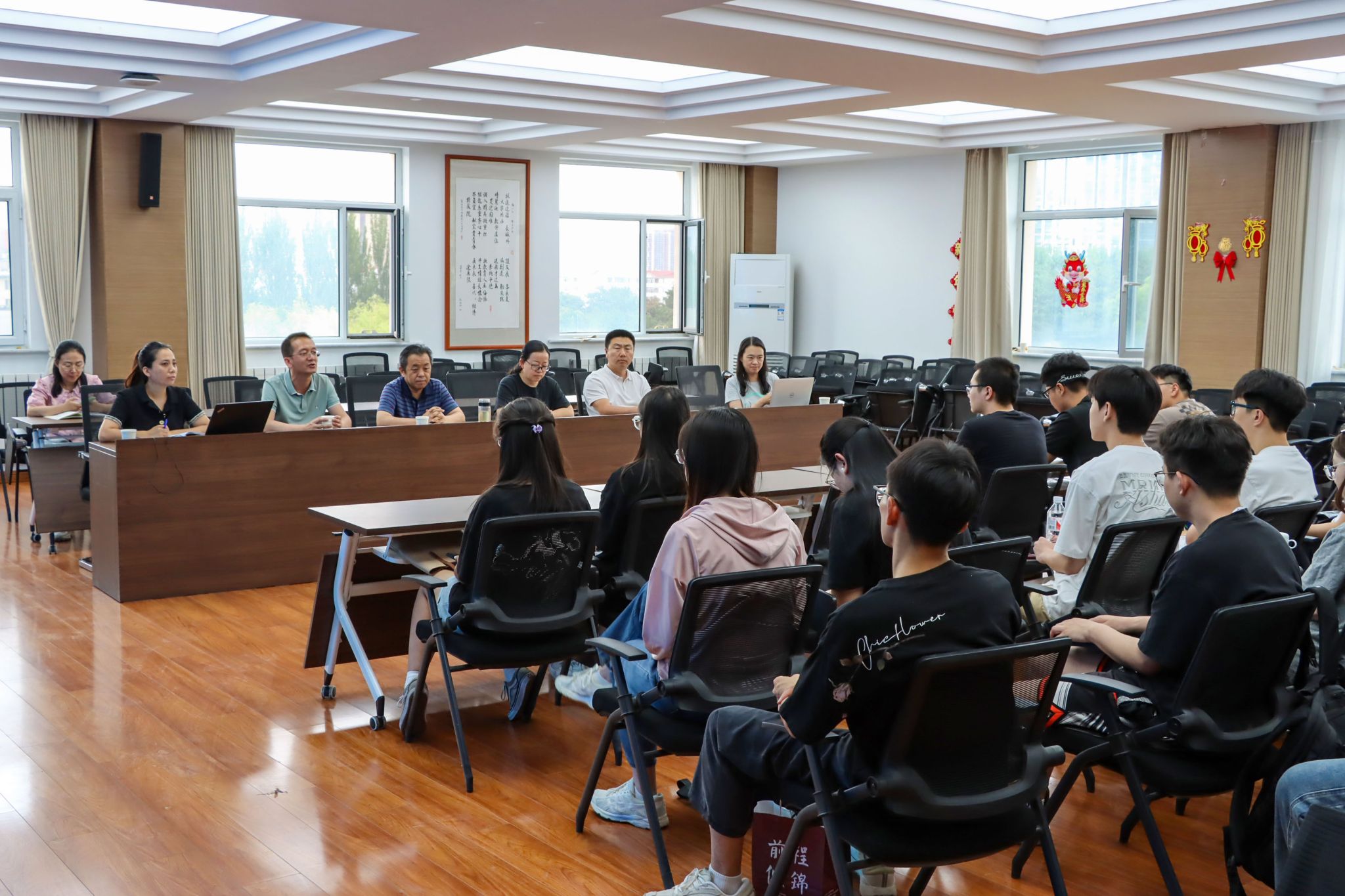 会上,贾德彬、高瑞忠、黄磊、张晓晶、王怡璇等教师代表与同学们就课程安排、学风建设、就业创业等方面展开交流讨论,对同学们提出的问题作出详细解答,并祝愿同学们以梦为马,不负韶华。