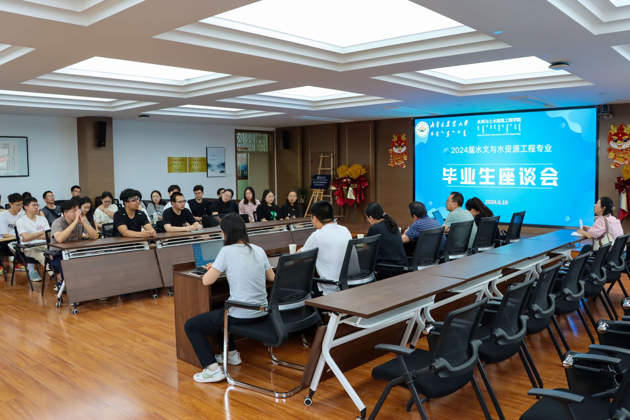 2024年6月19日,公司在水利楼502开展2024届水文与水资源工程专业毕业生座谈会。公司副经理史小红出席座谈会,水文与水资源工程专业教师代表、2024届毕业生代表参加,会议由资源环境系主任赵胜男主持。
